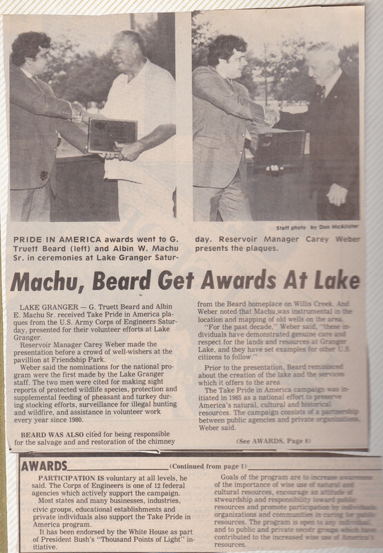 The arched entry gate was provided along with this 3-acre site east of Granger by the U.S. Army Corps of Engineers in the 1970s when the Old Friendship community's cemetery, and Allison, Beard and Machu family cemeteries had to be relocated, necessitated by the construction of Laneport Dam and the new lake that would cover their former locations.