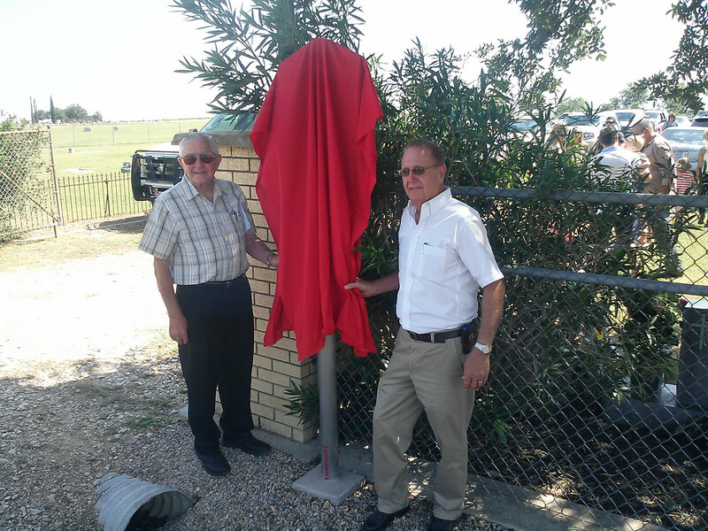 Darwin Machu (left) [son of Anton & Millie Machu] and Albin F. Machu (right) [son of Albin E. & Vlasta Machu] would certainly have made their parents proud. Both have labored tirelessly over the years toward improvements and maintenance at the family cemetery. Here they prepare to unveil the Williamson County Historical Marker at its dedication ceremony held on August 17, 2013. Over 200 guests attended, including family, city and county officials, community friends and neighbors. A special thank you to Darwin for his work on the research and acquisition of our historical marker.